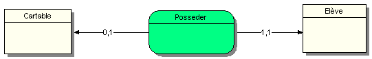 Dans une école, on suppose qu’un ELEVE possède un et un seul CARTABLE, qu’un CARTABLE est possédé par aucun ou au plus un ELEVE.