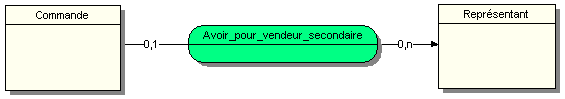 Relation : Avoir_pour_vendeur_secondaire (2 pattes) Commande 0,1 Représentant 0,n