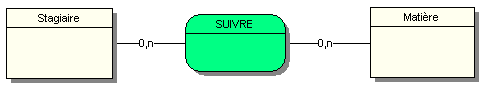Dans cet exemple, un stagiaire peut ne suivre aucune matière ou plusieurs, et une Matière peut n’être suivie pas aucun stagiaire, voire plusieurs stagiaires.