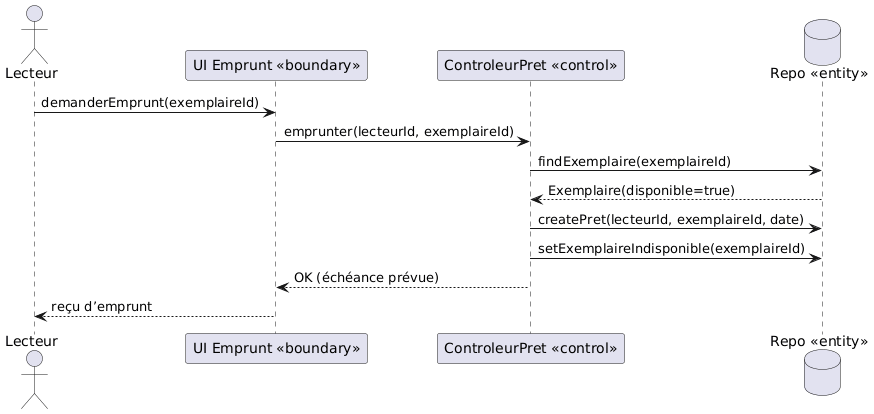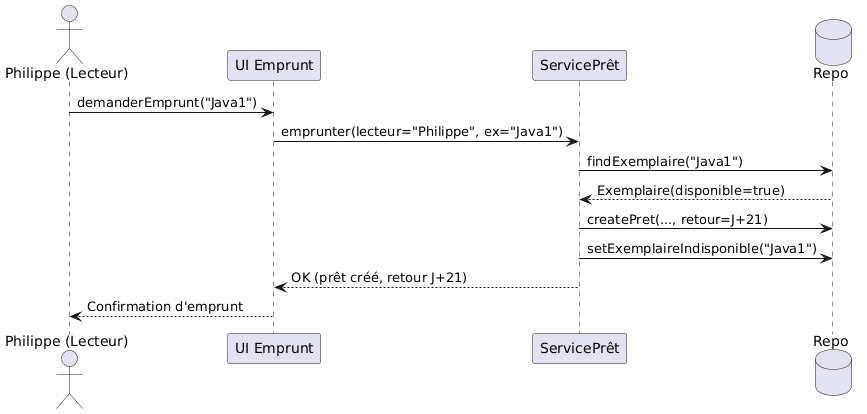 Exemple avec un diagramme de séquence “Emprunter”