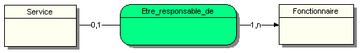 Relation : Etre_responsable_de (2 pattes) Service 0,1 Fonctionnaire 1,n