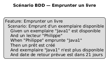 Exemple avec un diagramme de séquence “Emprunter”